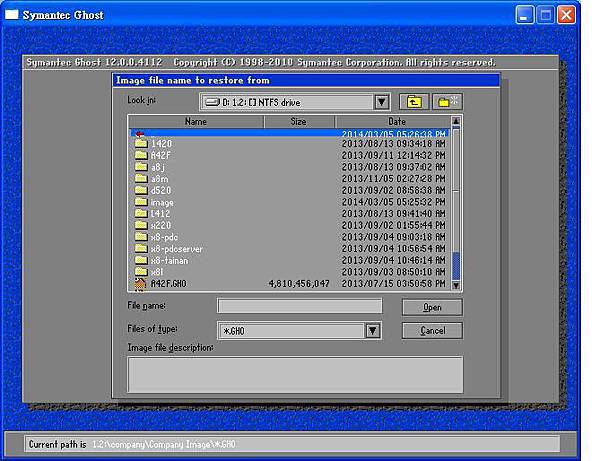 4.在目錄內切換到存放image的位置,選好後按下[Enter]或[Open]按鈕。