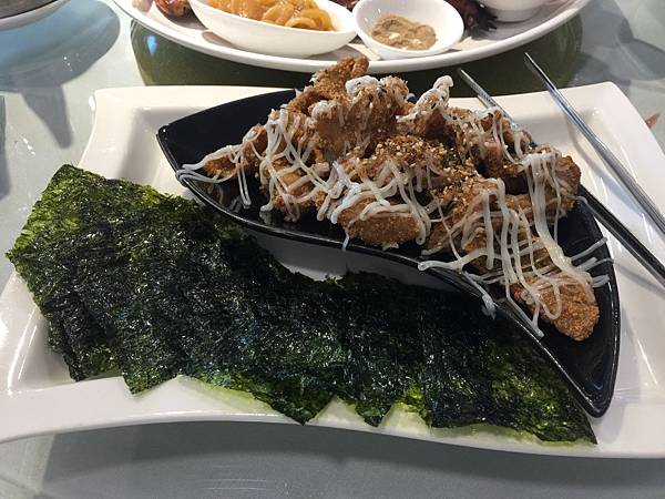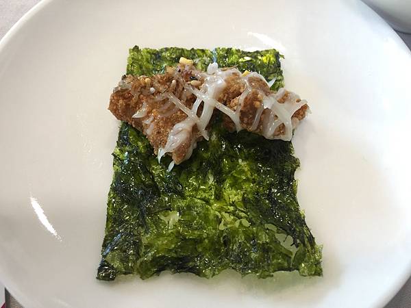 海苔松阪豬,松阪豬撒上了孜然粉,意外的適合,包上海苔一起吃,真的是全新的體驗。